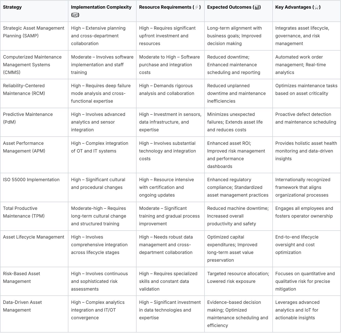 - Customized strategies: Tailors maintenance to each asset's specific needs and criticality.