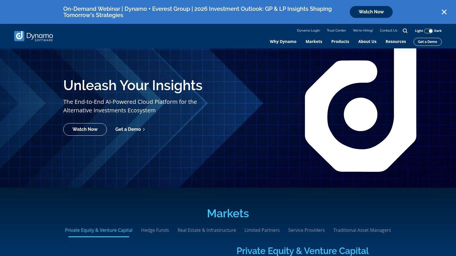 Dynamo Software offers a comprehensive, front-to-back platform tailored for the alternative investment landscape, including real estate syndicators who need more than just a CRM. Its strength lies in its expansive functional coverage, extending from deal sourcing and pipeline management into fundraising, investor relations, and portfolio monitoring. This makes it an excellent choice for firms seeking a unified system to manage the entire investment lifecycle, not just the initial transaction.