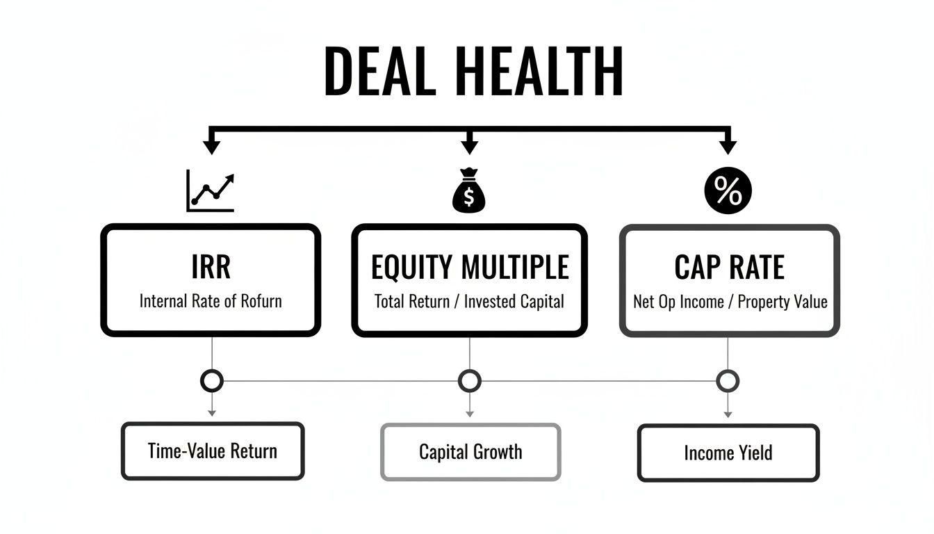 Think of IRR, Equity Multiple, and Cap Rate as the vital signs of an investment. Investors use them for a quick check-up on a deal's potential, and their strength directly influences how they feel about the fairness and upside of your proposed deal structure.