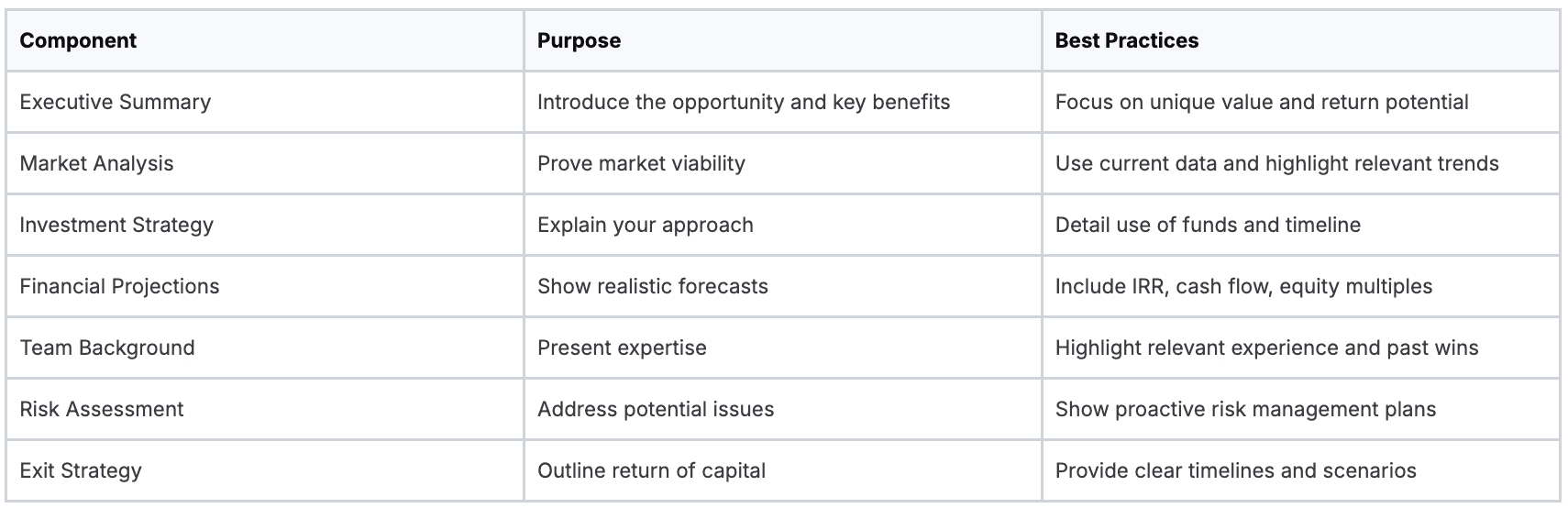 Creating compelling investment pitches is essential for raising real estate capital. Your pitch serves as the critical connection between your project's potential and investor funding. Getting it right means going beyond data to tell a persuasive story backed by solid numbers.