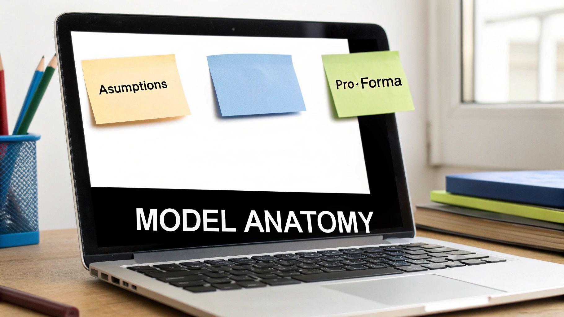 Think of a professional real estate financial model as a well-organized blueprint, not a jumbled mess of numbers. Each section has a specific job, and understanding how they connect is the key to turning a simple spreadsheet into a powerful tool for making smart investment decisions.