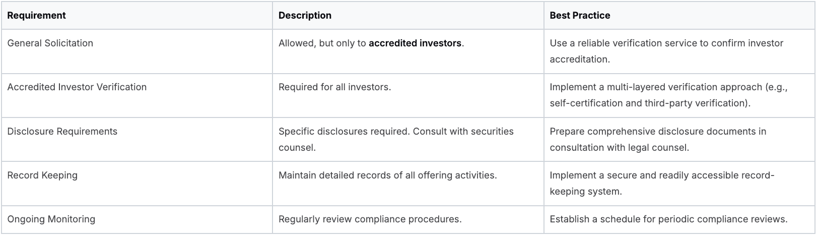 Essential compliance requirements and best practices for successful Rule 506(c) offerings
