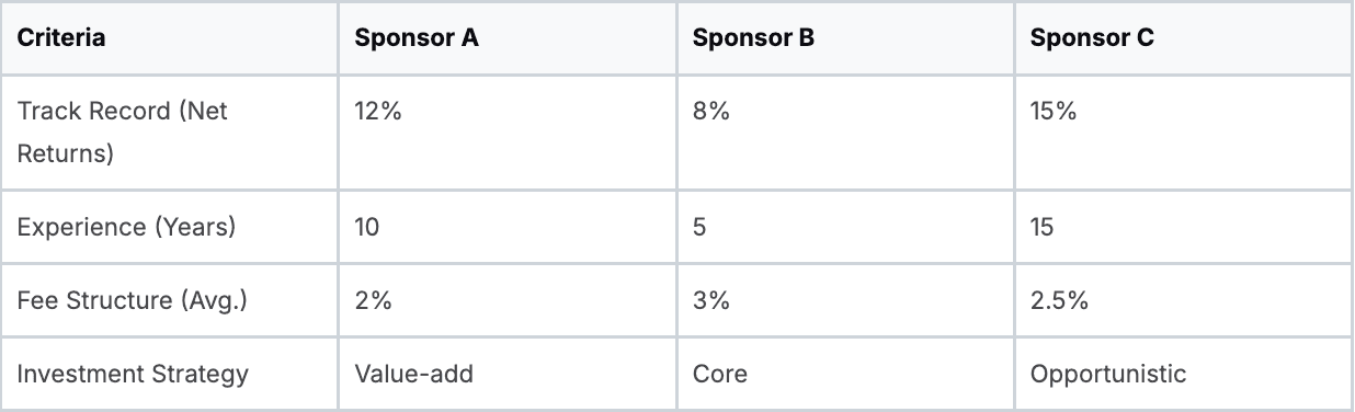 - Aligned Incentives: Fee structures should ensure sponsors and investors share common goals. This motivates sponsors to maximize returns for all parties involved.
