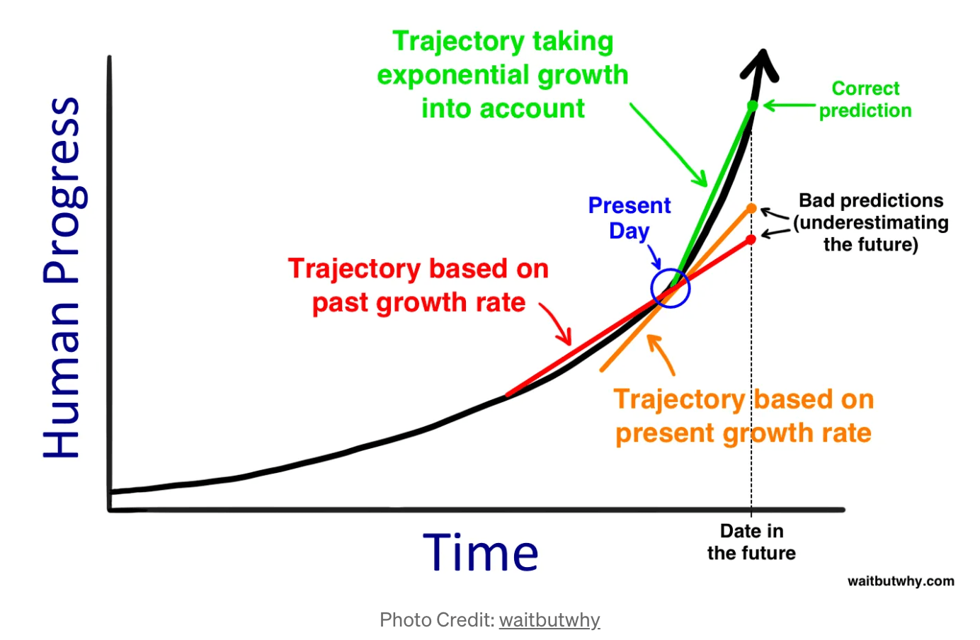 Tim Urban sums it up best in his blog, Wait but Why: “It’s most intuitive for us to think linearly, when we should be thinking exponentially.”
