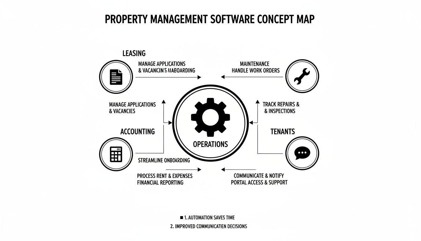 This map gives you a great visual of how these core operational domains—leasing, maintenance, accounting, and tenant relations—all connect.
